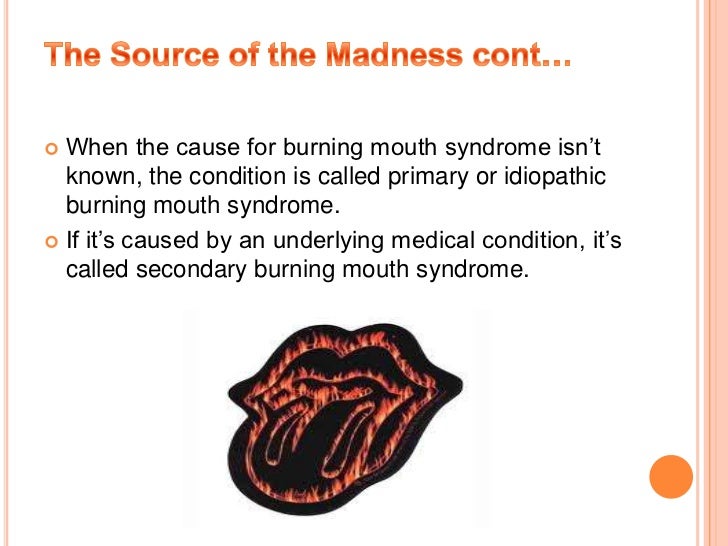 Hello there Im not sure if youre still seeing these messages. You get this feeling when there are changes in the way the nerves in your mouth send messages to your brain - for example about taste and temperature. A review and update Burning mouth syndrome BMS is mainly found in middle aged or elderly women and is characterized by intense burning or itching sensation of the tongue or other regions of the oral mucosa. You can also try these self-care tips to help ease the pain of burning mouth syndrome. Of all the various illnesses and conditions that can affect the mouth burning mouth syndrome BMS is among the most mysterious and difficult to treat. Burning-mouth syndrome is characterized by a burning sensation in one or several oral structures Tourne and Fricton 1992. For those people who brush their tongue and are too abrasive with their hand action a bout of BMS could be in their future. The syndrome generally manifests spontaneously and the disc. The pathogenesis may be summarized into local systemic and psychological etiologies.