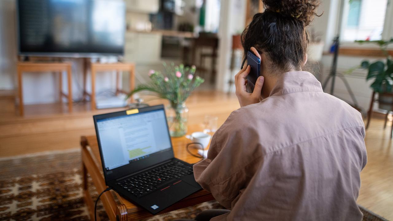 Man arbeitet vom Küchentisch oder Sofa aus meidet körperlichen Kontakt.