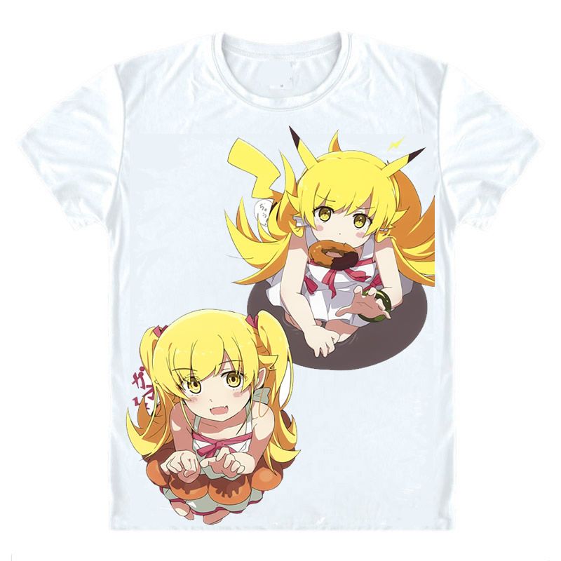 Who is the girl at the end of Owarimonogatari. As an adult he is shown wearing a pink Hawaiian shirt with a red flower pattern which he leaves unbuttoned showing his bare torso. Camiseta monogatari oshino shinobu camisa masculina 3d impressão t shirts anime adorável bonito manga curta camisas dos homens comic japonês aAproveite promoções envio grátis proteção ao consumidor e retorno simplificado ao comprar de lojas na China e no mundo inteiro. Oshino is a middle aged man with black eyes blonde spikey hair and a pointy goatee. Available in Plus Size T-Shirt. His most recognizable trait is his propensity to wear Hawaiian shirts something hes done ever since college. V-neck or crew neckline. That would be platinum. As if to exemplify his languid nature he wears just the simple getup of a Hawaiian shirt shorts and sandals.