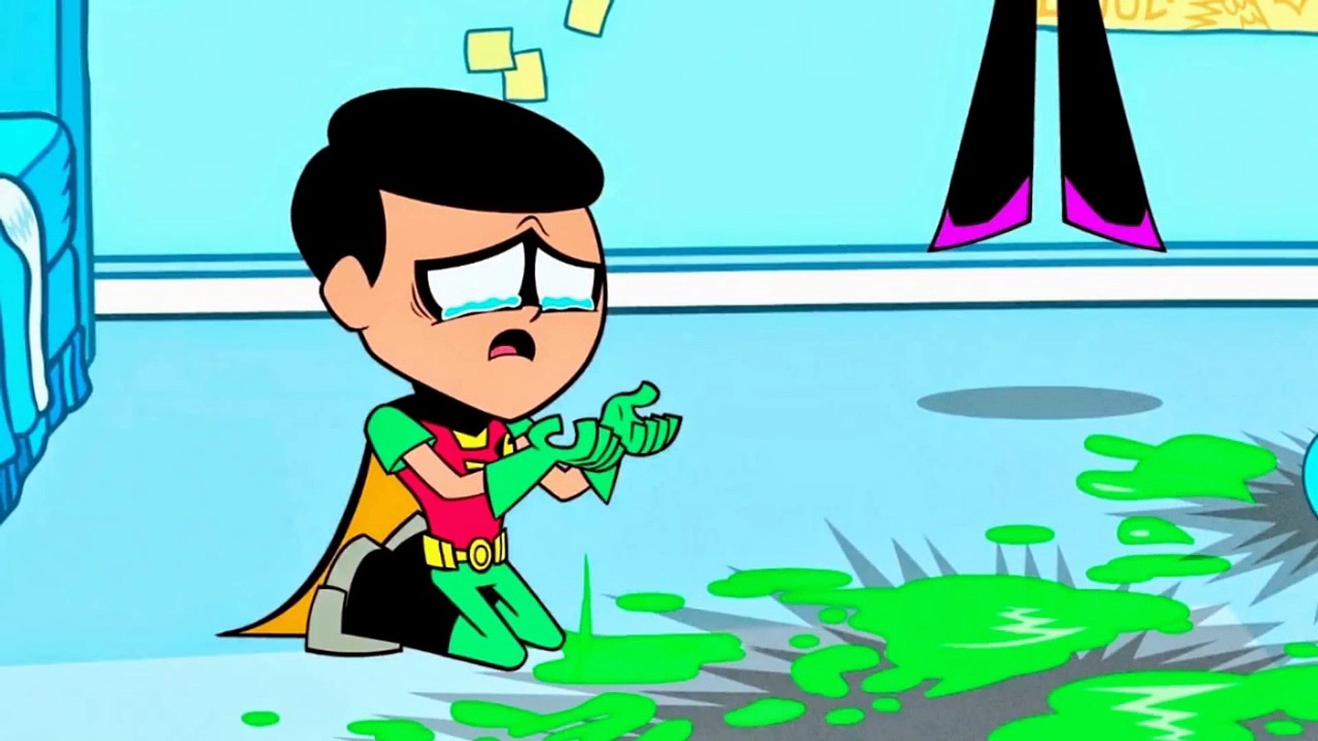 Teen titans go baby hands. In Baby Hands Blood returns alive and well. It premiered on September 11 2014. Robin embraces the dramatic lighting.